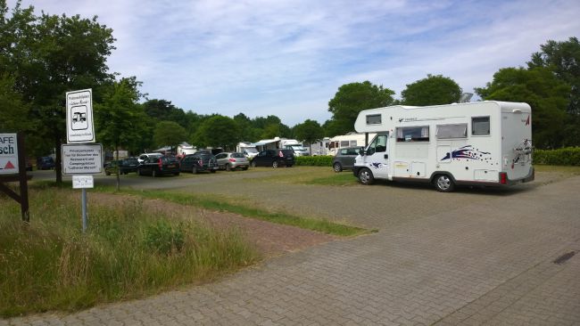 Auf dem Parkplatz ist ein eigener Bereich für Wohnmobile reserviert, welcher mit Bäumen bepflanzt ist. Die neuen Plätze befinden sich sogar direkt am See.